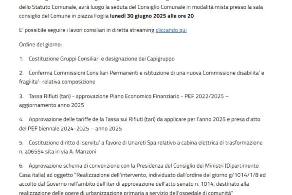 Convocazione Consiglio Comunale del 30 giugno 2025. Info su https://www.comune.rozzano.mi.it/it/news/convocazione-consiglio-comunale-del-30-giugno-2025.
